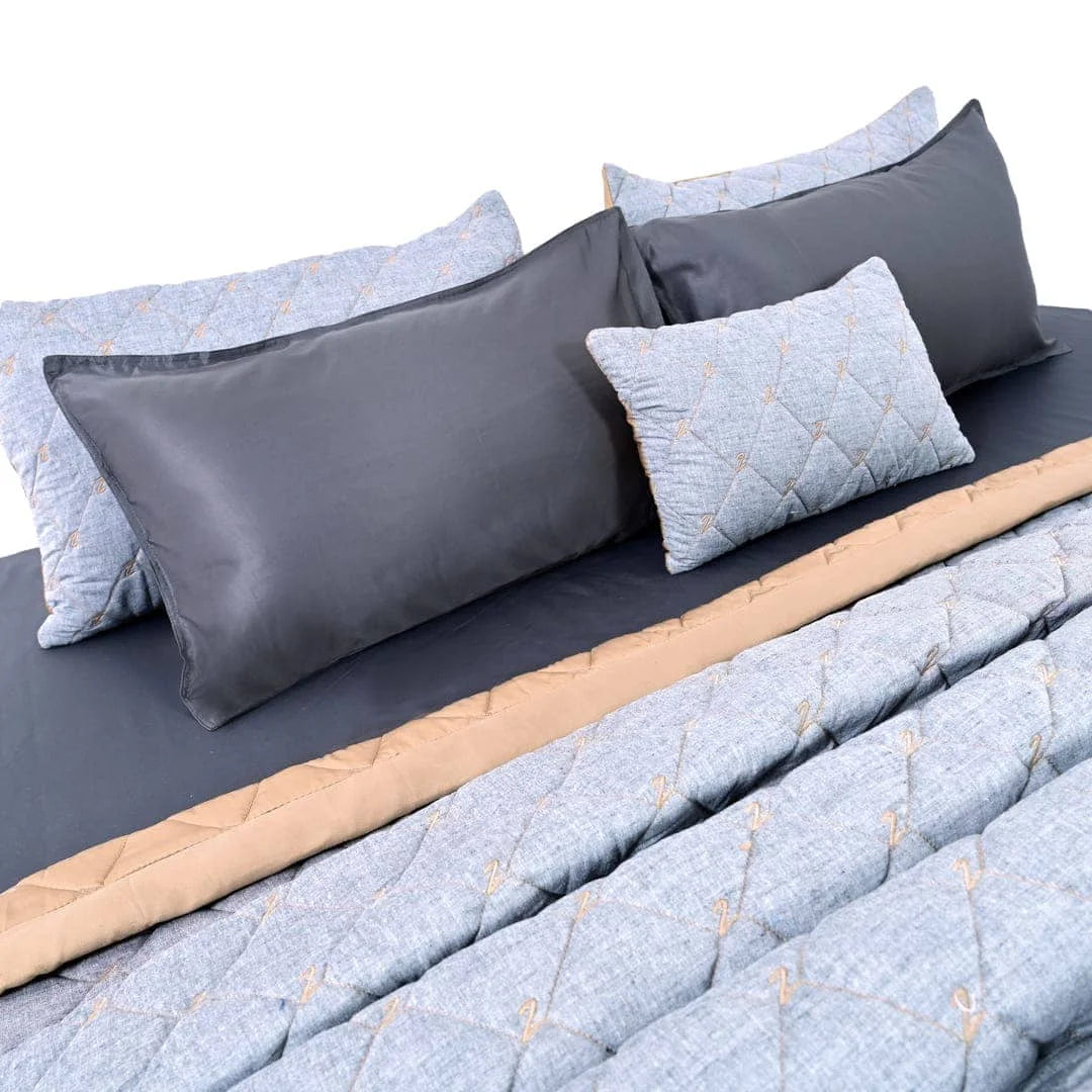 ZARF All-Season Comforter, paired with 2 pillow cases and 1 Breakfast cushion cover, is wrapped in the cosy comfort of lightweight peached micro vegan and linen blend