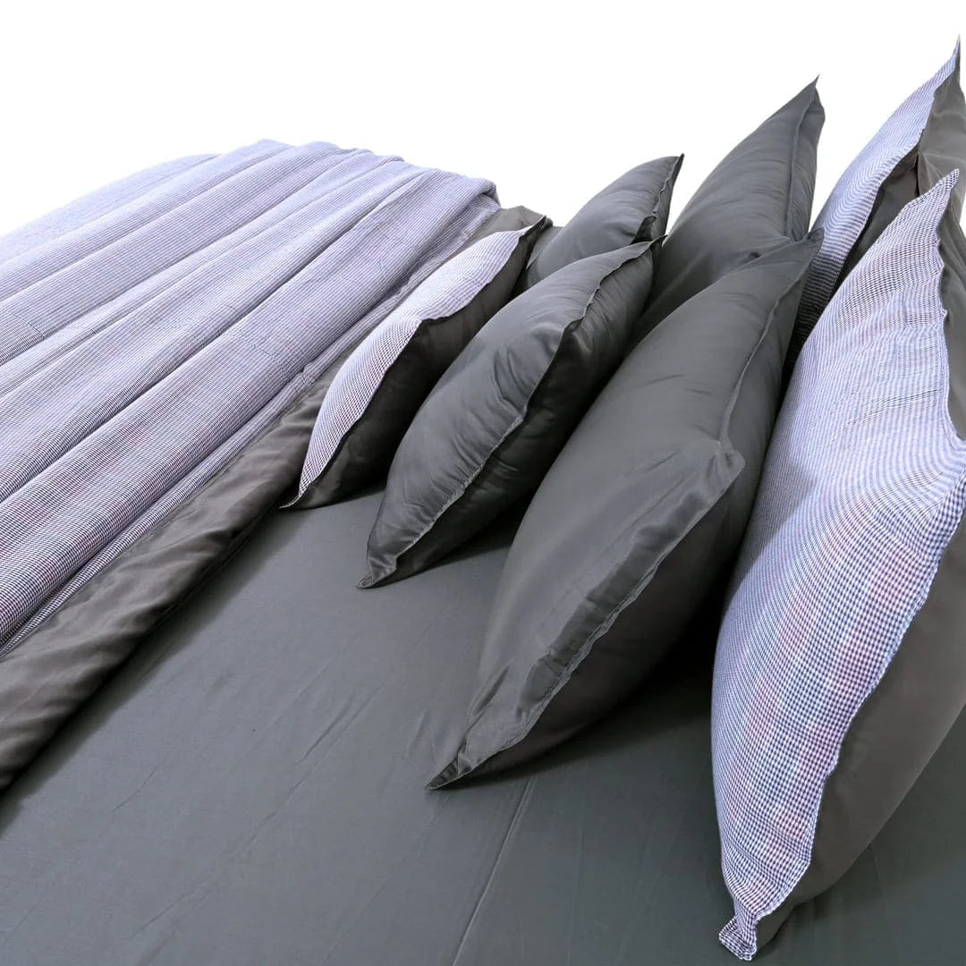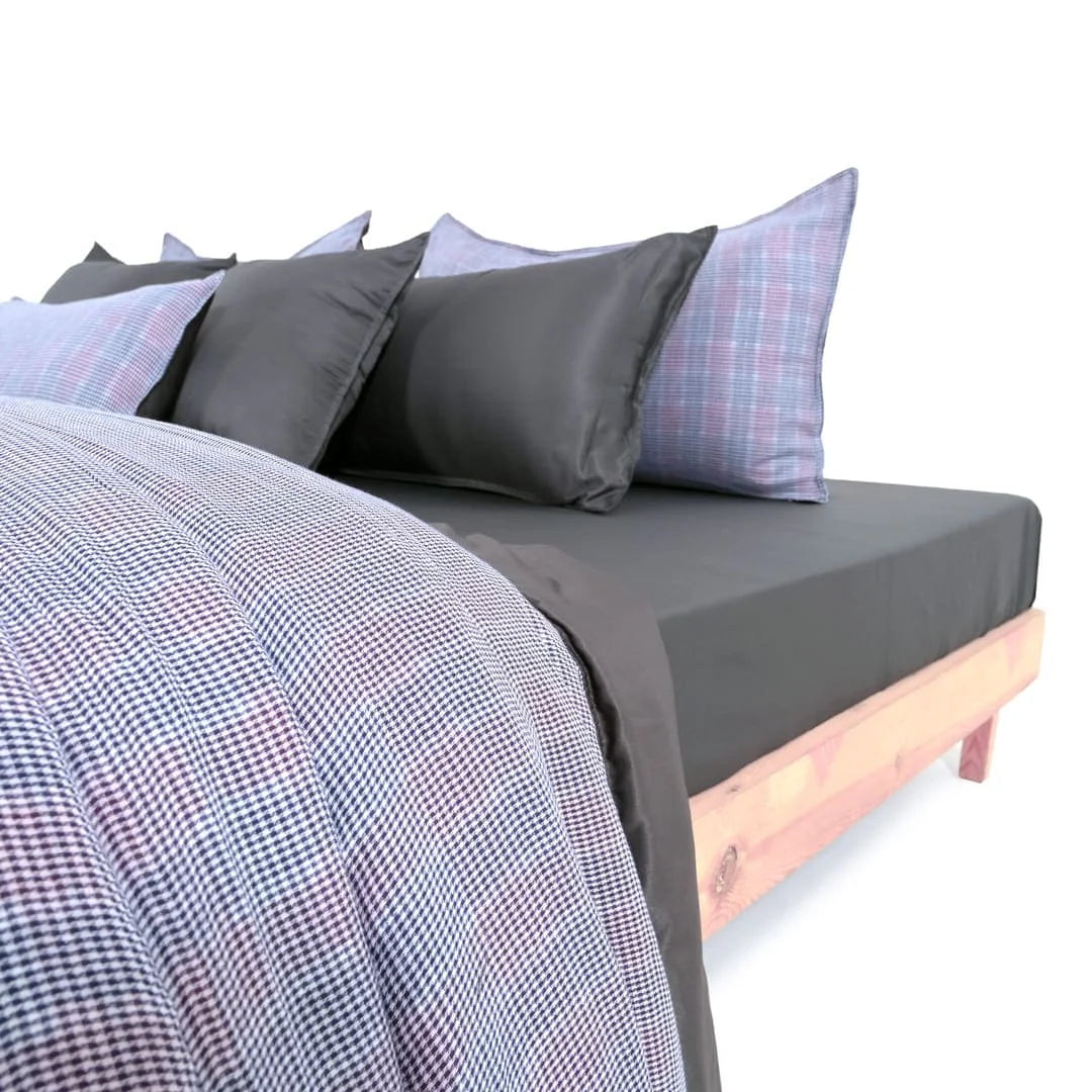 ZARF All-Season Comforter, paired with 2 pillow cases and 1 Breakfast cushion cover, is wrapped in the cosy comfort of lightweight peached micro vegan and linen blend