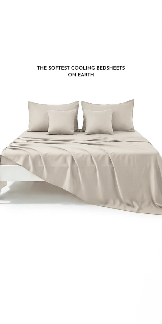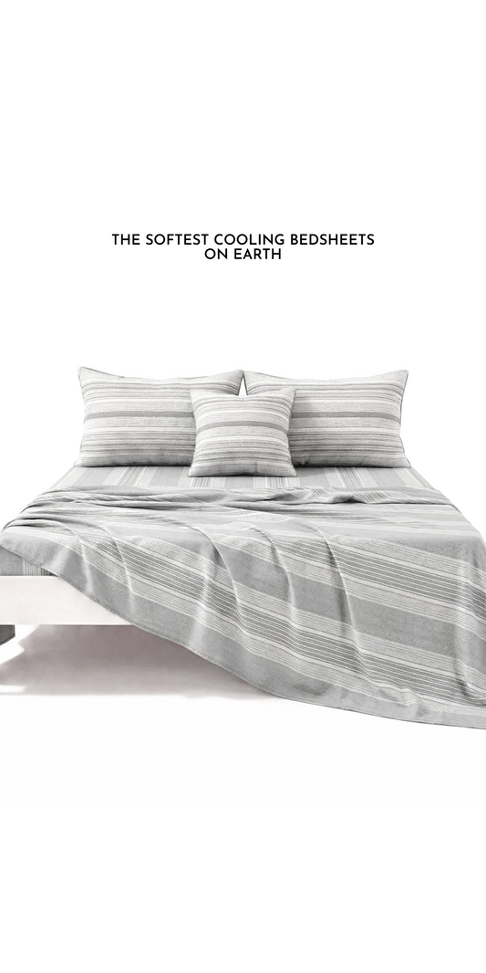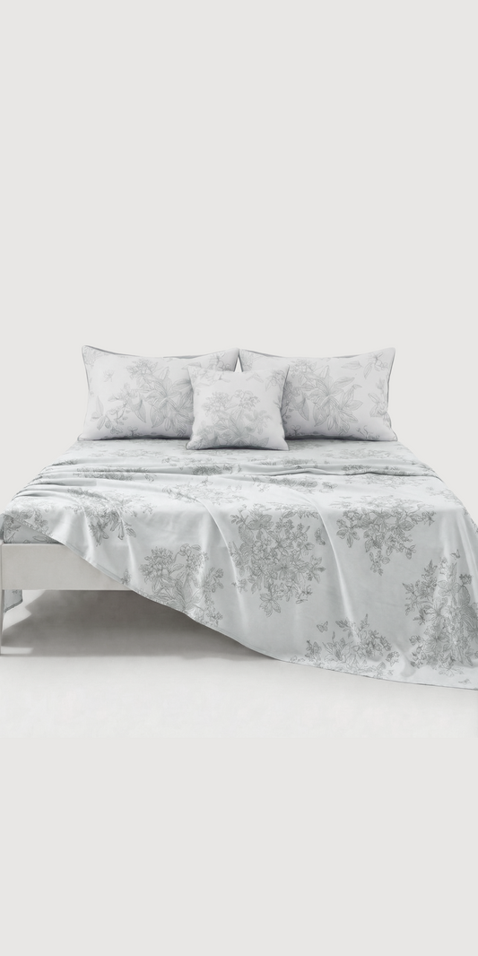 Zeries Egyptian Cotton Bedsheets With 2 Pillow Cases & 2 Cushion Covers - Dove