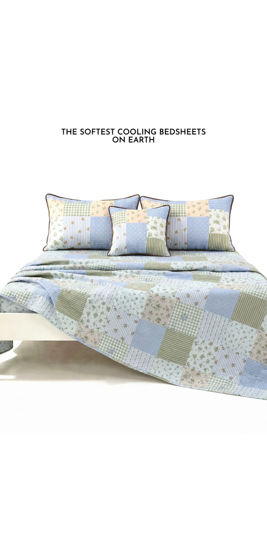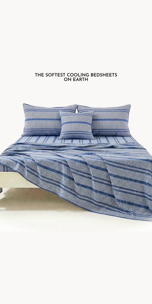 Zeries Egyptian Cotton Bedsheets With 2 Pillow Cases & 2 Cushion Covers - Atlantic