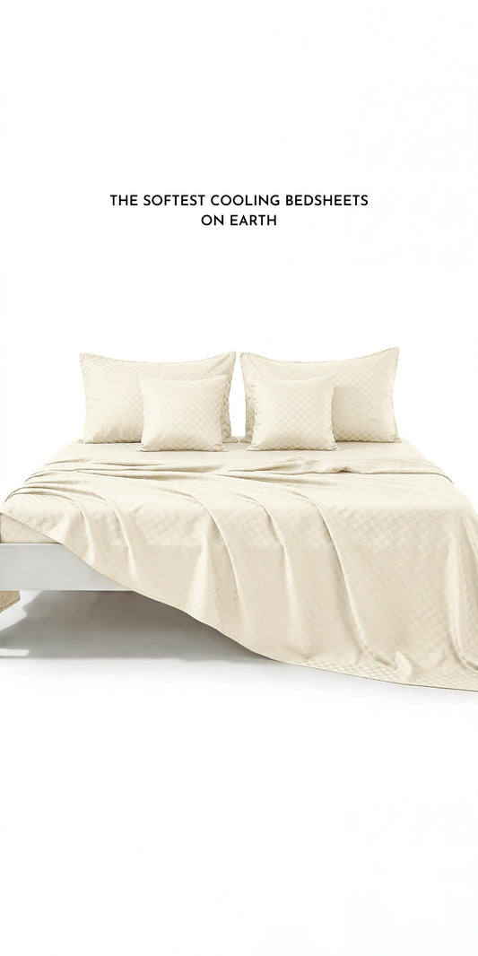 Zeries Egyptian Cotton Jacquard Bedsheets With 2 Pillow Cases & 2 Cushion Covers - Ivory