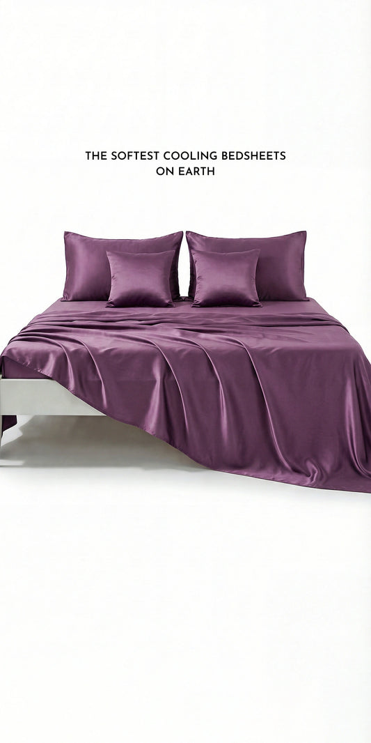 Zeries Egyptian Cotton Bedsheets With 2 Pillow Cases & 2 Cushion Covers - Plum