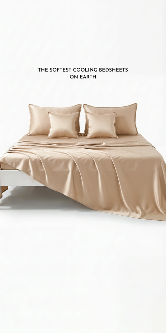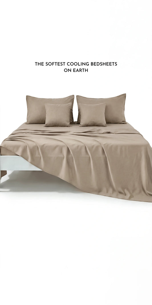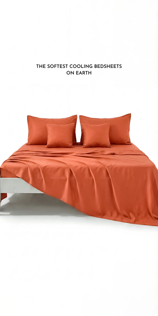Zeries Egyptian Cotton Bedsheets With 2 Pillow Cases & 2 Cushion Covers - Terra