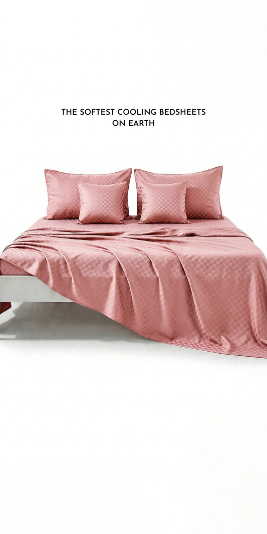 Zeries Egyptian Cotton Jacquard Bedsheets With 2 Pillow Cases & 2 Cushion Covers - Petal