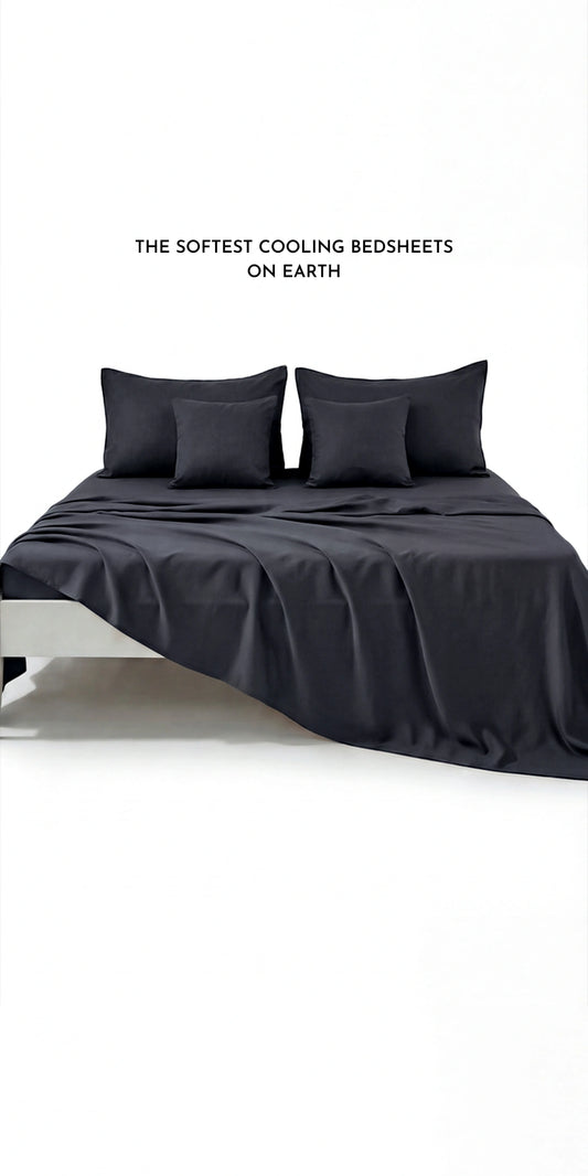 Zeries Egyptian Cotton Bedsheets With 2 Pillow Cases & 2 Cushion Covers - Raven