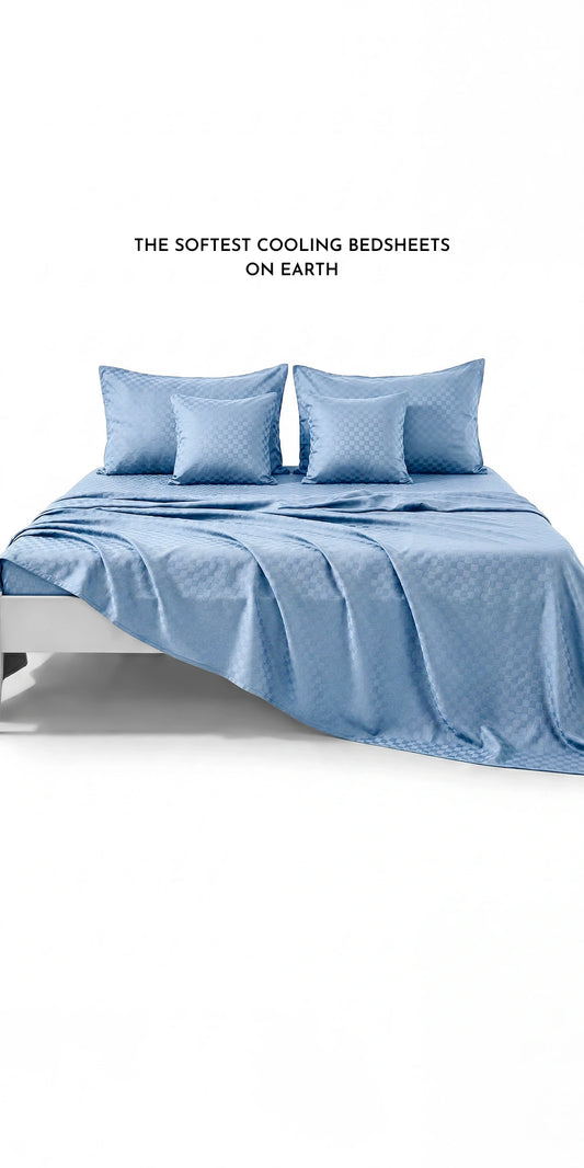 ZARF Italian Staple Weave Bedsheet With 2 Solid Pillowcases - Skyline