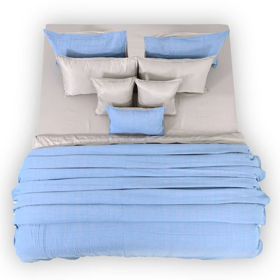 ZARF Italian Staple Weave Bedsheet With 2 Designer Pillow Cases, 2 Solid Pillowcases & 2 Cushion Covers - Skyline