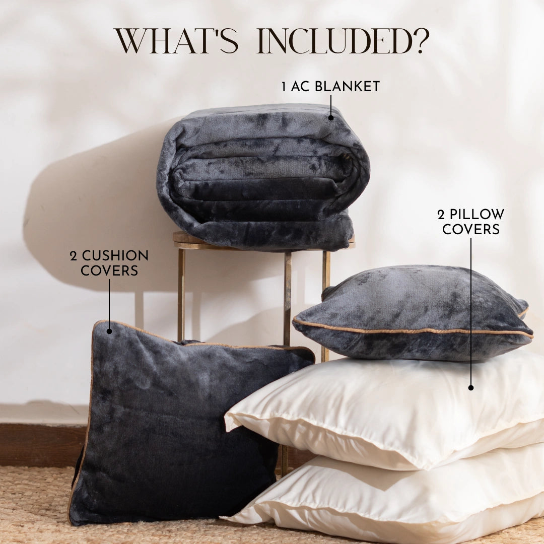 ZARF ALL-SEASON PREMIUM AC BLANKET SET OF 5 - Charcoal Grey