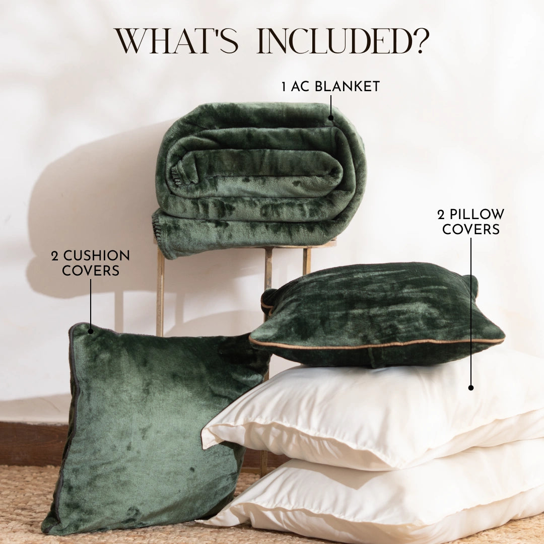 ZARF ALL-SEASON PREMIUM AC BLANKET SET OF 5 - Olive