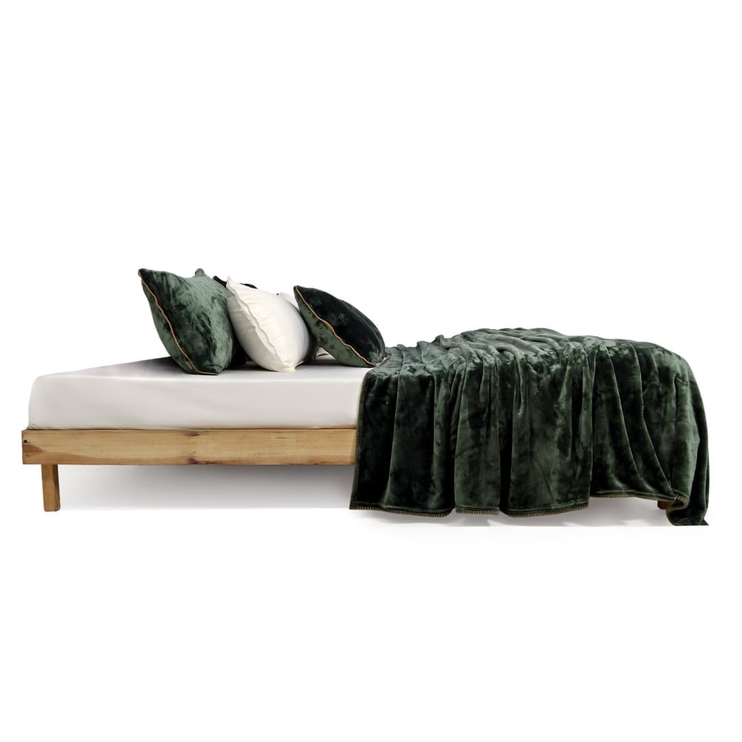 ZARF Italian Staple Weave Bedsheet With 2 Designer Pillow Cases, 2 Solid Pillowcases & 2 Cushion Covers - Pine