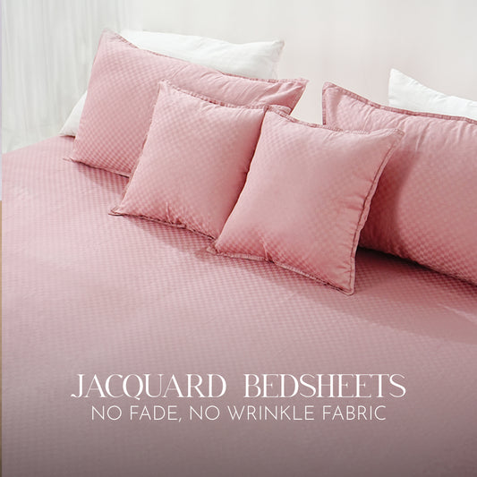 Zeries Egyptian Cotton Jacquard Bedsheets With 2 Pillow Cases & 2 Cushion Covers - Petal