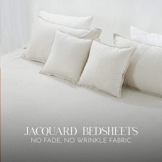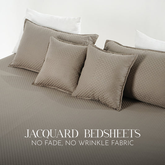 Zeries Egyptian Cotton Jacquard Bedsheets With 2 Pillow Cases & 2 Cushion Covers - Sienna