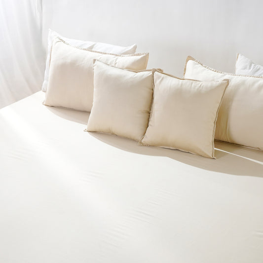 ZARF Italian Staple Weave Bedsheet With 2 Designer Pillow Cases, 2 Solid Pillowcases & 2 Cushion Covers - Porcelain