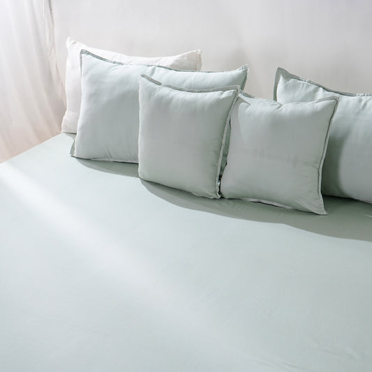 ZARF Italian Staple Weave Bedsheet With 2 Designer Pillow Cases, 2 Solid Pillowcases & 2 Cushion Covers - Pine