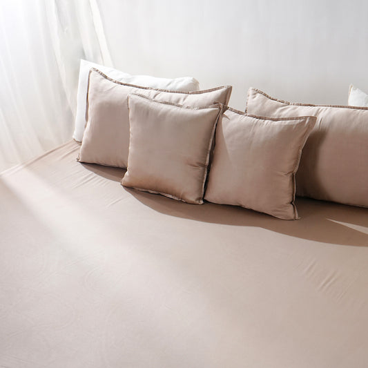 ZARF Italian Staple Weave Bedsheet With 2 Designer Pillow Cases, 2 Solid Pillowcases & 2 Cushion Covers - Caramel