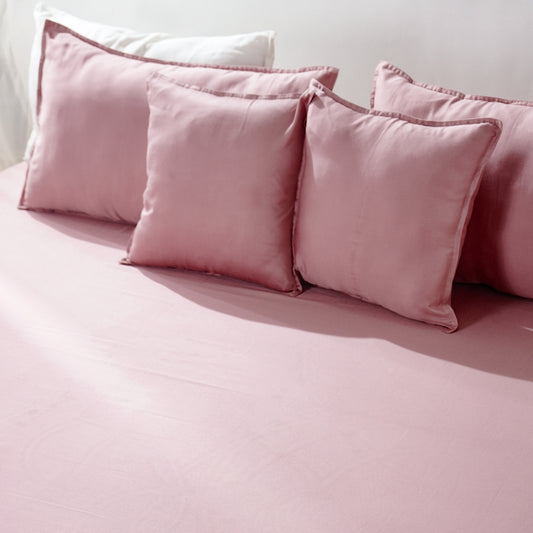 ZARF Italian Staple Weave Bedsheet With 2 Designer Pillow Cases, 2 Solid Pillowcases & 2 Cushion Covers - Orchid