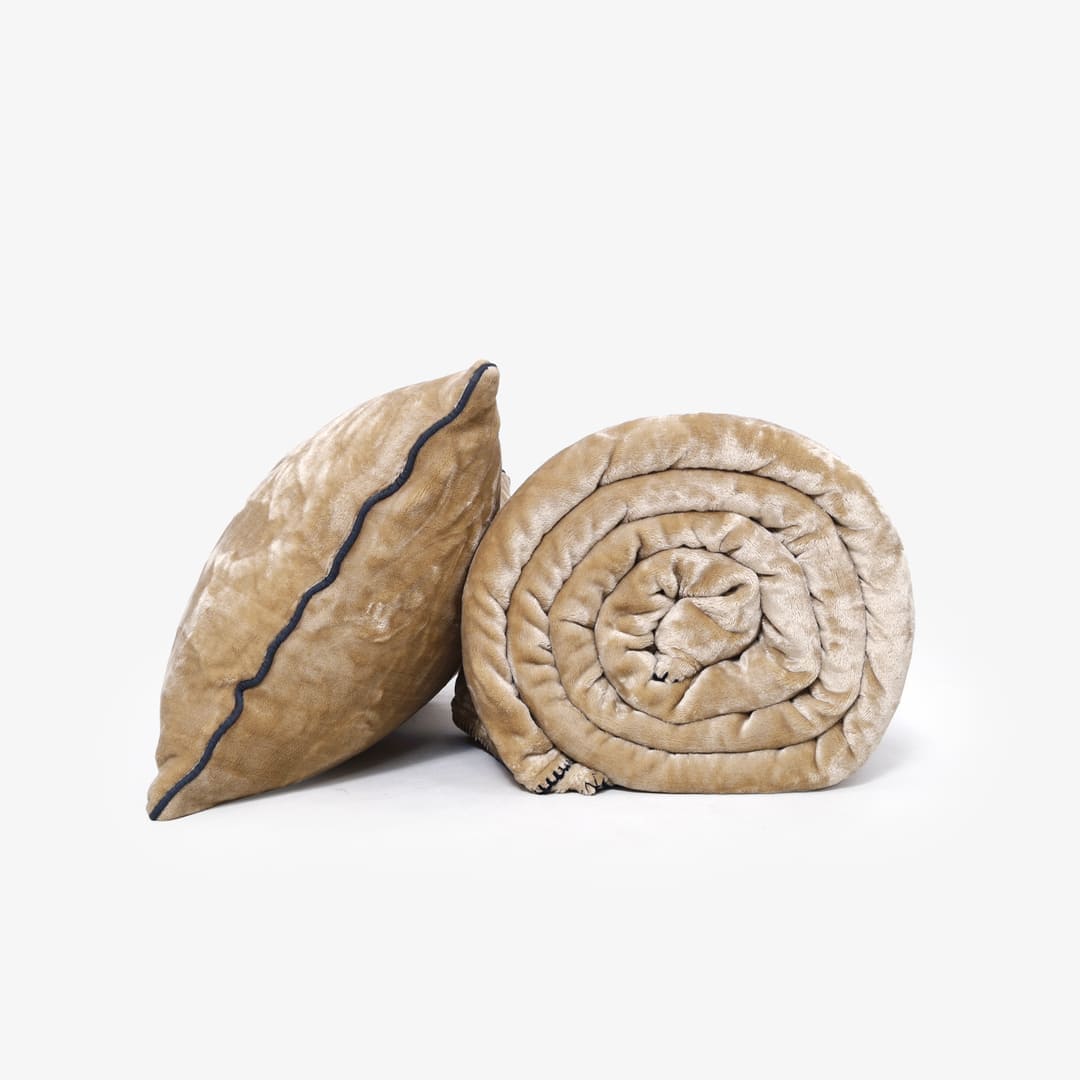 Zarf All-Season Premium AC Blanket With Two Pillow Covers & Two Cushion Covers - Taupe