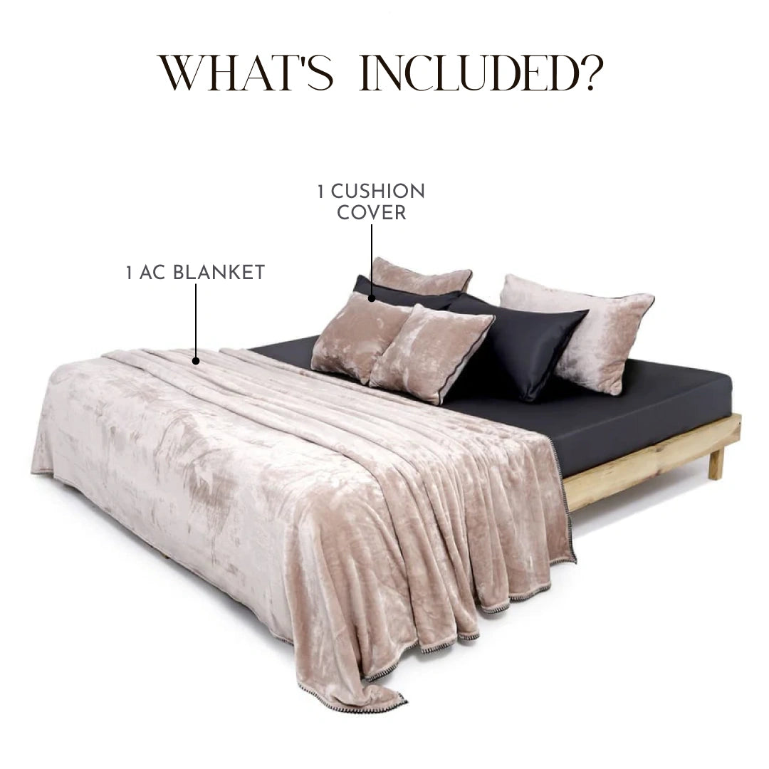 Zarf All-Season Premium Baby Size AC Blanket With One Cushion Cover - Ecru