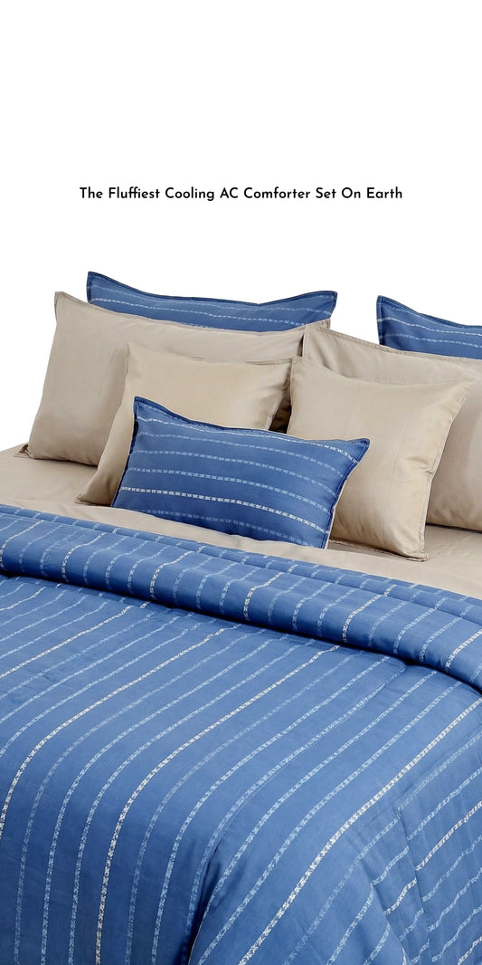 Linen Blend AC Comforter With 2 Pillow Cases and 1 Breakfast Pillow - Mariner