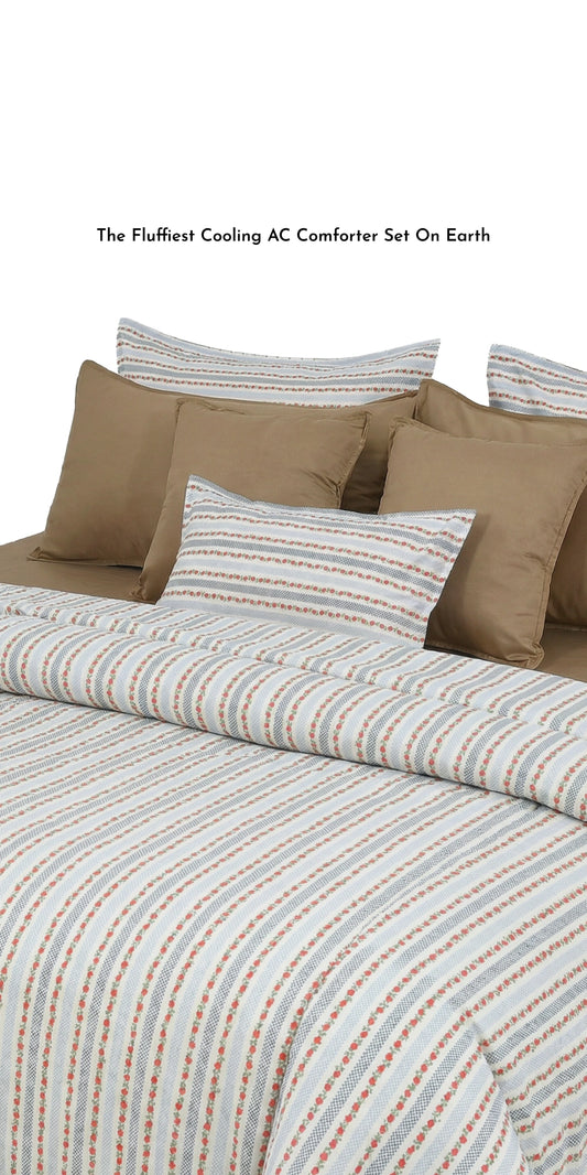 Linen Blend AC Comforter With 2 Pillow Cases and 1 Breakfast Pillow - Ruban