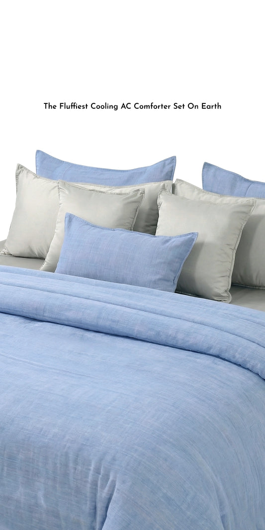 Linen Blend AC Comforter With 2 Pillow Cases and 1 Breakfast Pillow - Halo