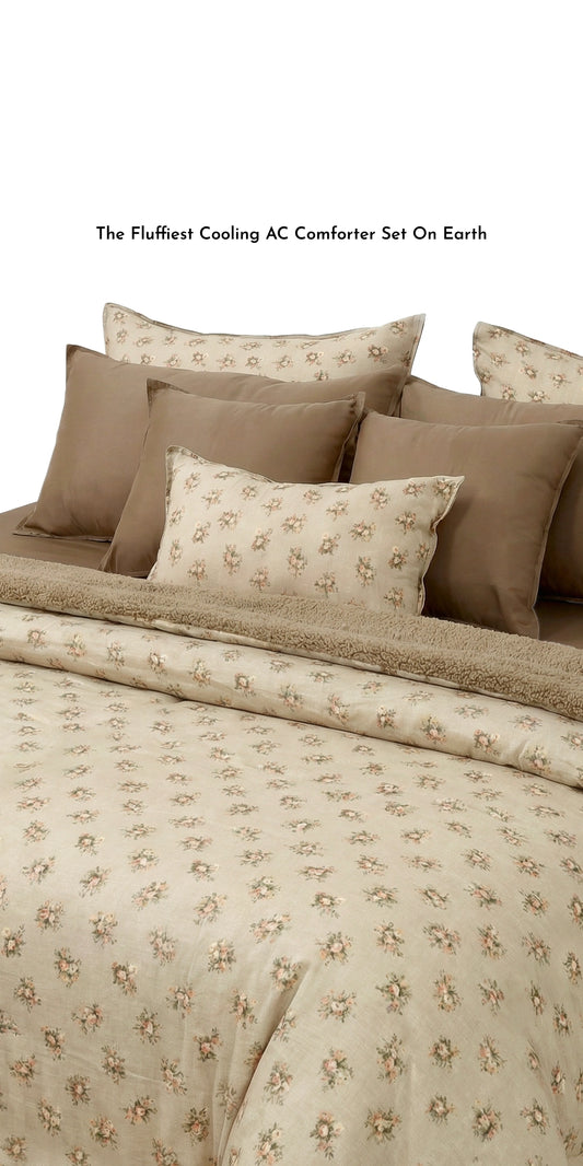 Linen Blend AC Comforter With 2 Pillow Cases and 1 Breakfast Pillow - Fresa