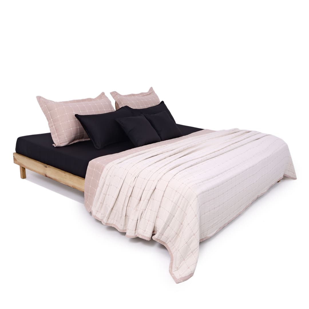 ZARF Italian Staple Weave Bedsheet With 2 Designer Pillow Cases, 2 Solid Pillowcases & 2 Cushion Covers - Porcelain