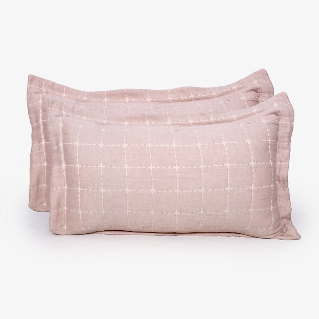 ZARF Italian Staple Weave Bedsheet With 2 Designer Pillow Cases, 2 Solid Pillowcases & 2 Cushion Covers - Dahlia