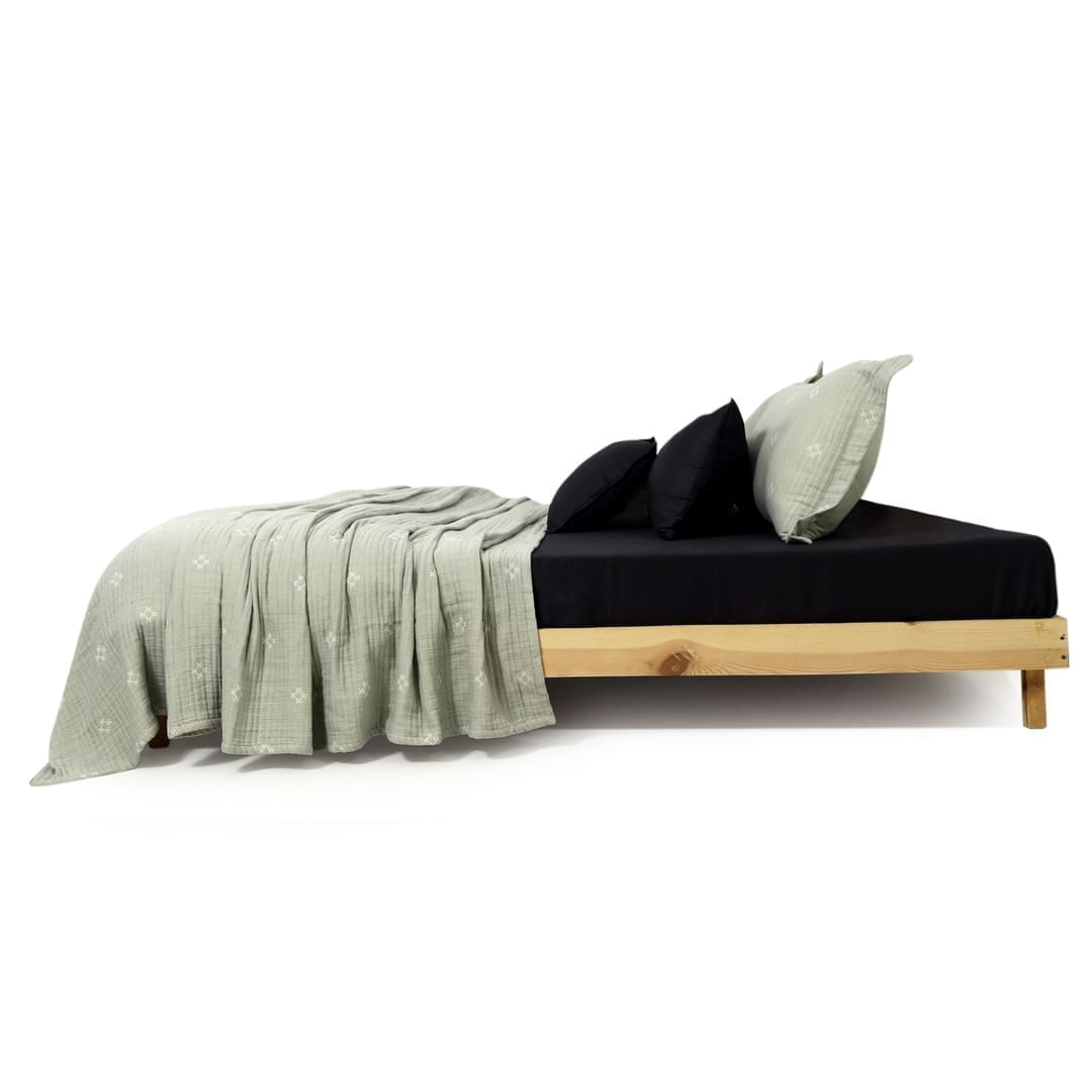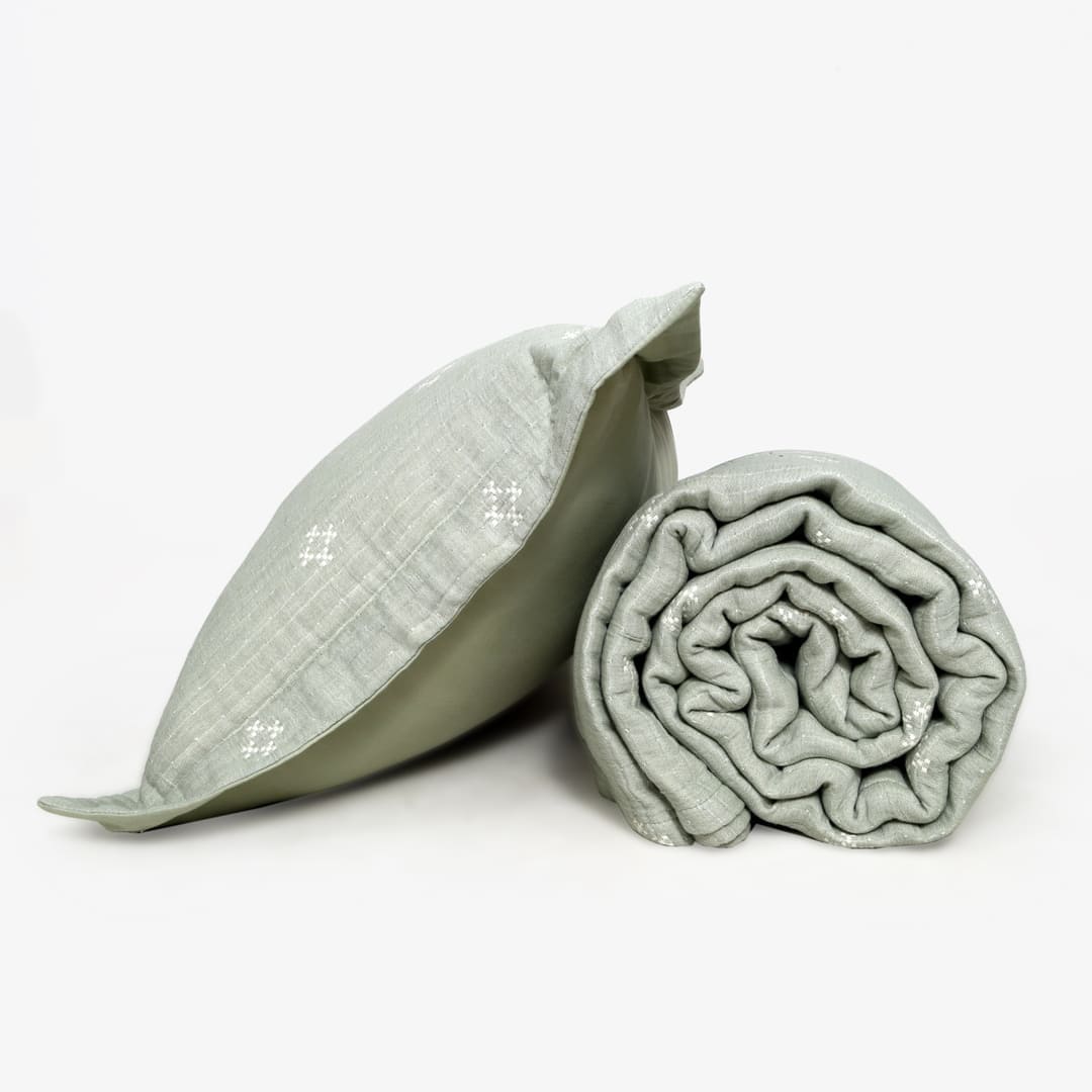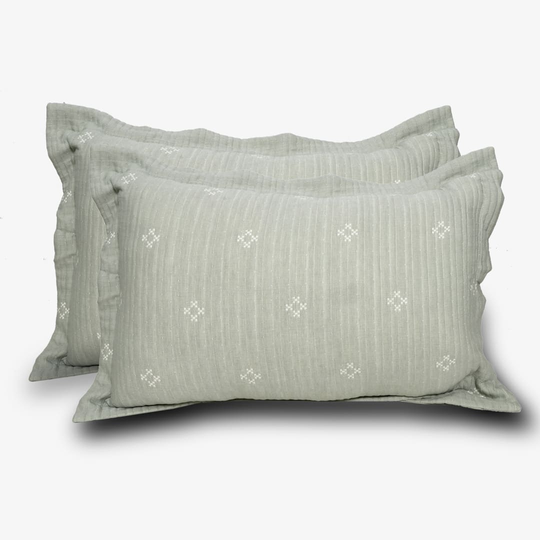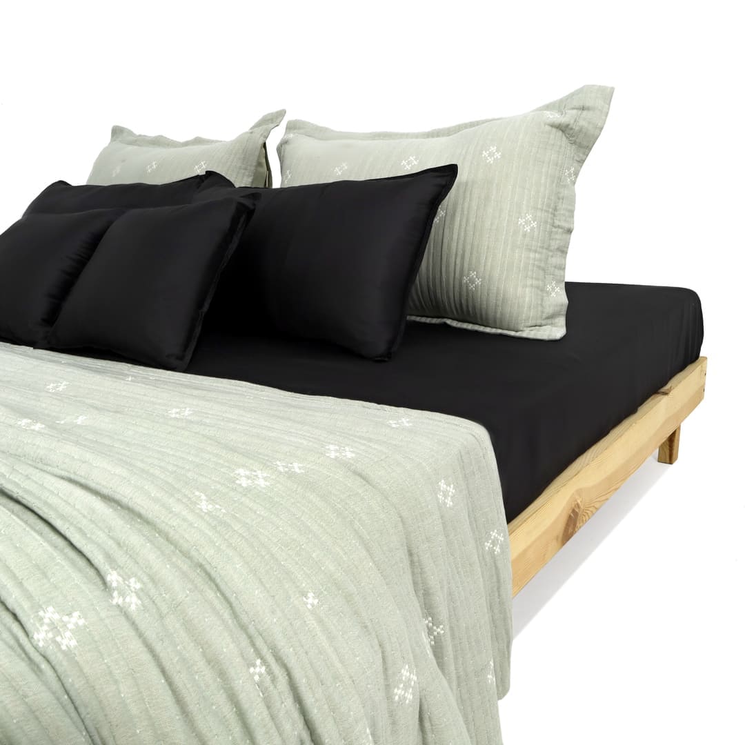 ZARF Italian Staple Weave Bedsheet With 2 Designer Pillow Cases, 2 Solid Pillowcases & 2 Cushion Covers - Pine