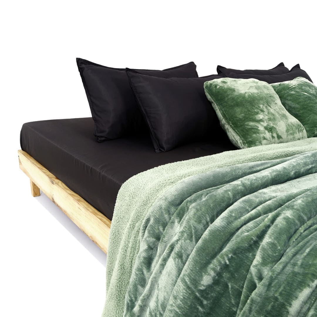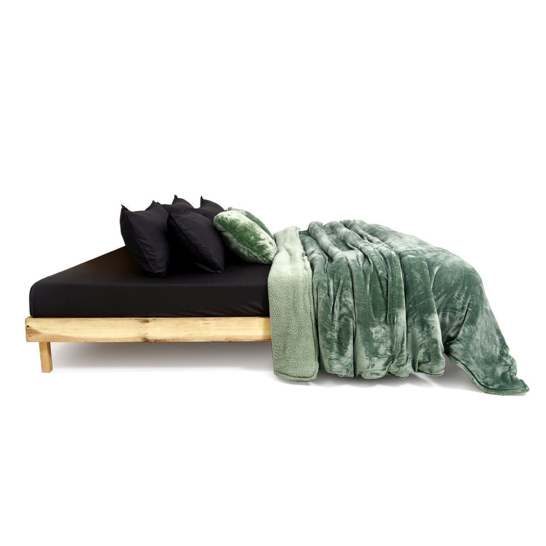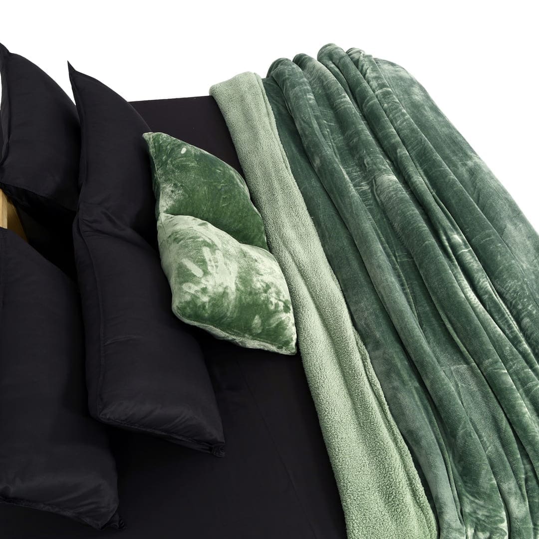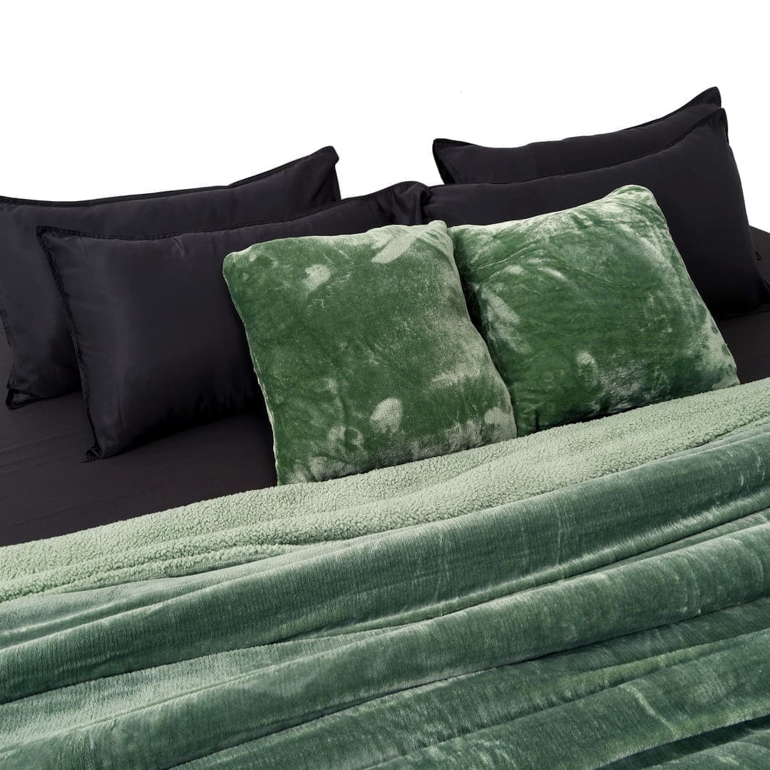 ZARF Italian Staple Weave Bedsheet With 2 Designer Pillow Cases, 2 Solid Pillowcases & 2 Cushion Covers - Pine