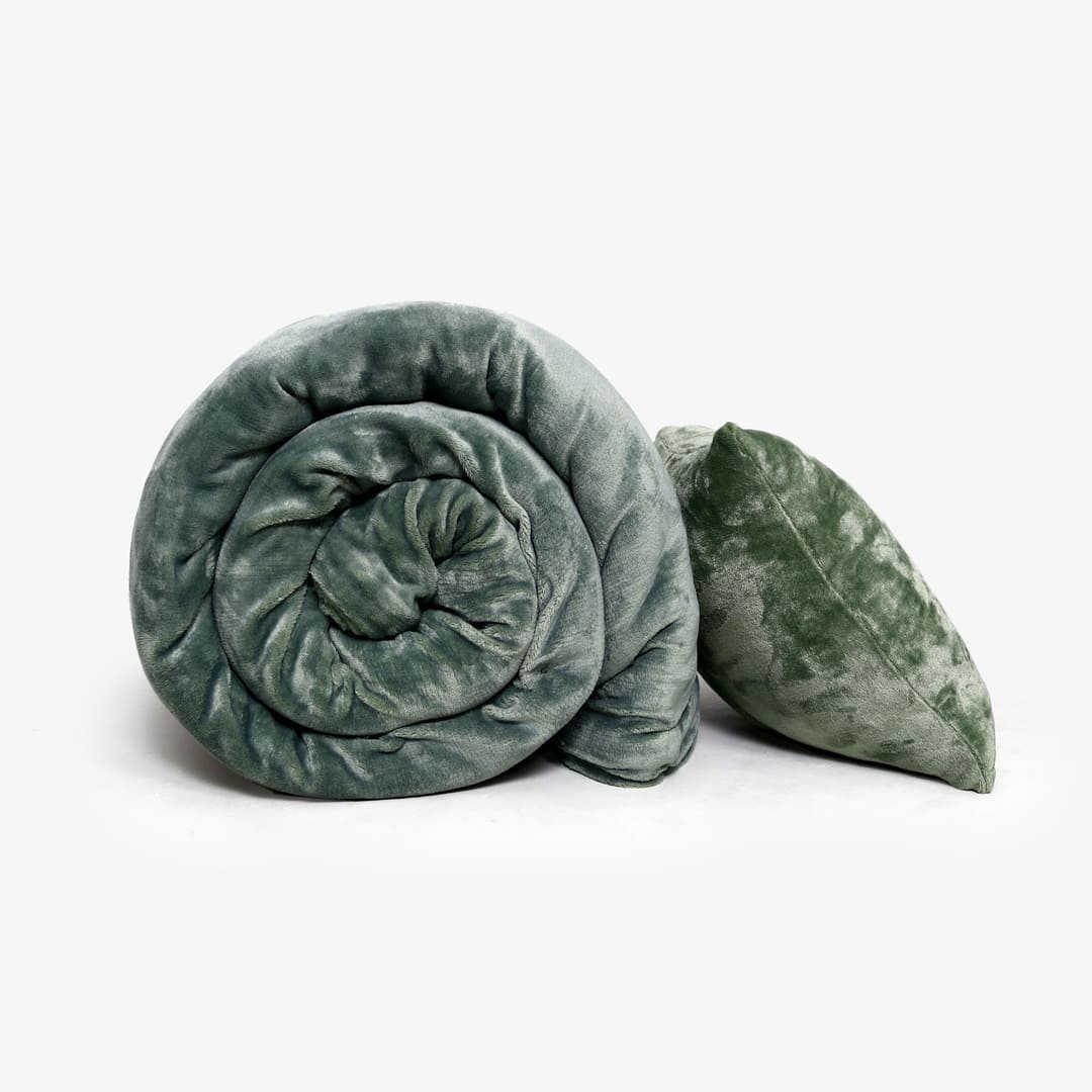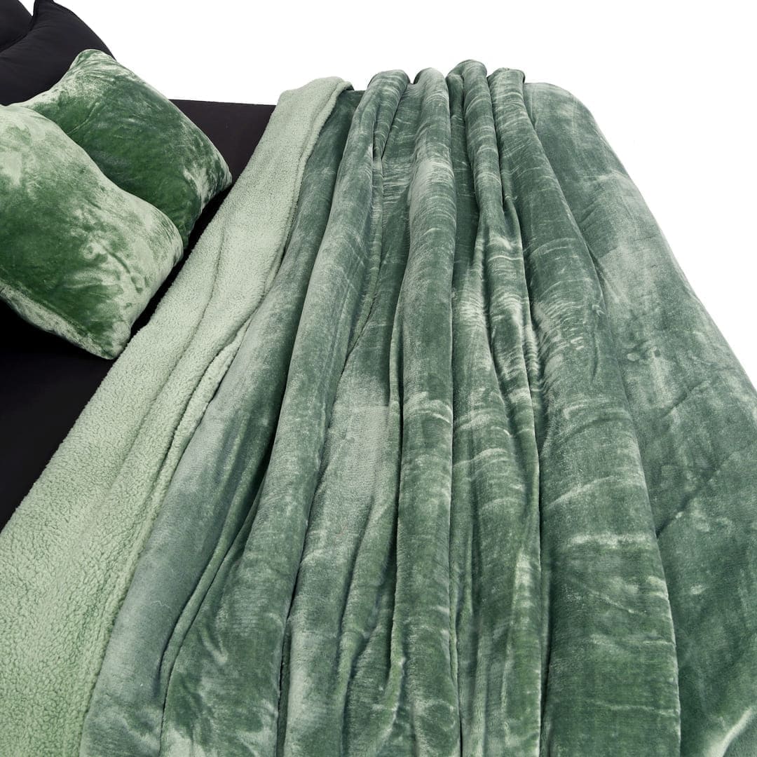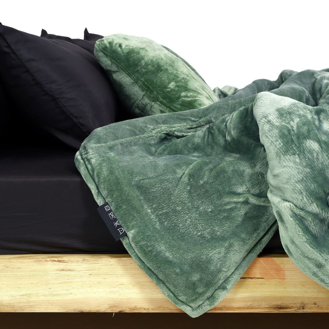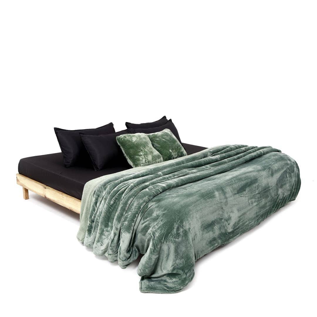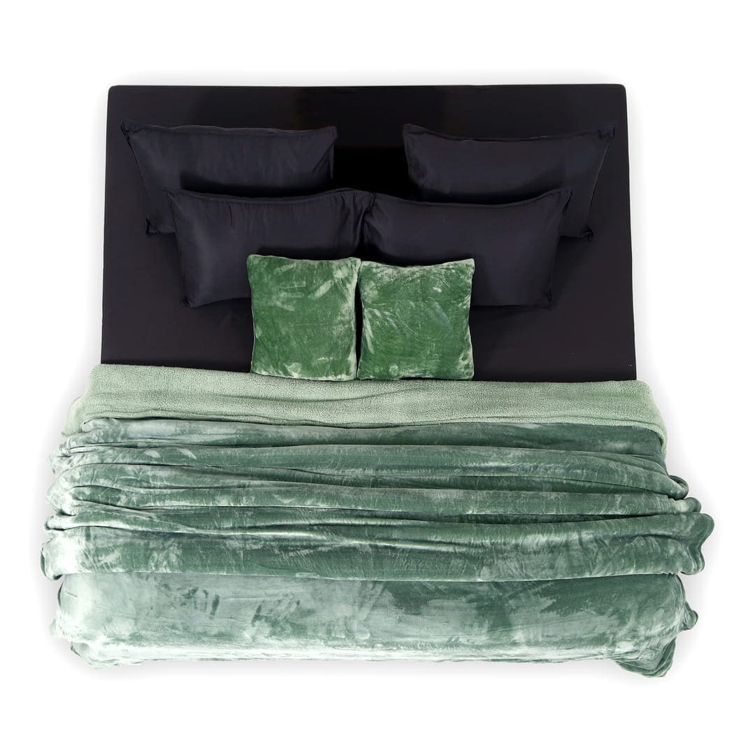ZARF Italian Staple Weave Bedsheet With 2 Designer Pillow Cases, 2 Solid Pillowcases & 2 Cushion Covers - Pine