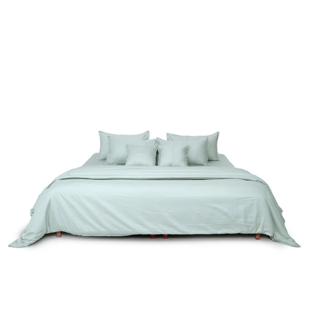 ZARF Italian Staple Weave Comforter With 2 Designer Pillow Cases, 2 Solid Pillowcases & 2 Cushion Covers - Pine