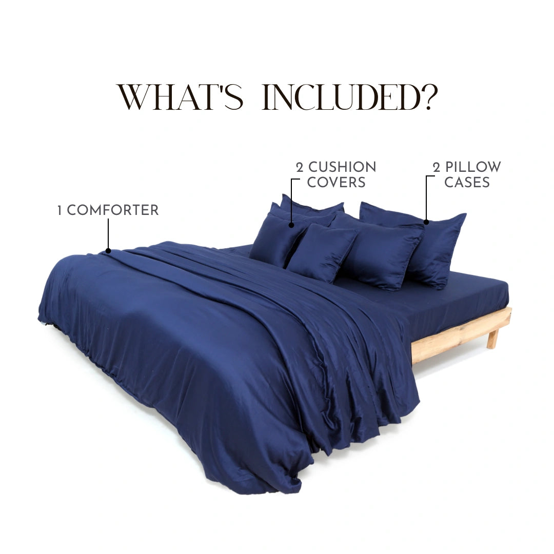 Zarf California King Size AC Comforters With 2 Pillow Cases & 2 Cushion Covers - Navy Blue