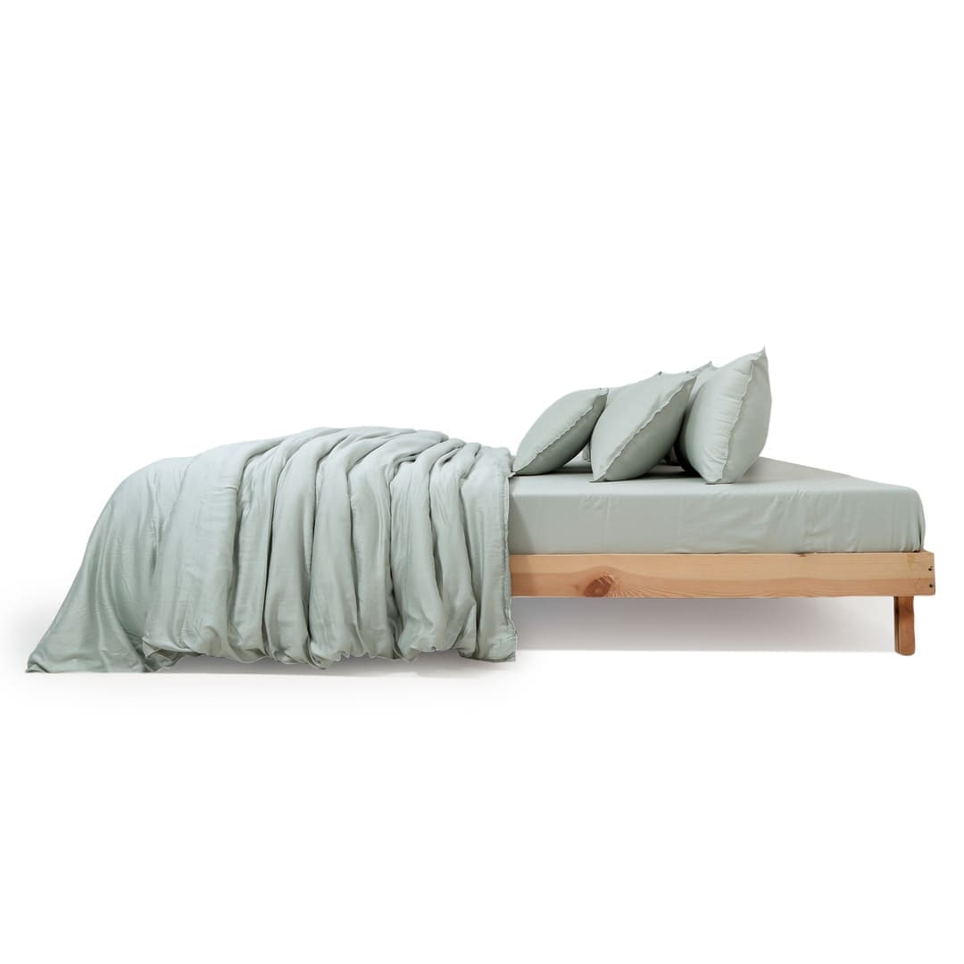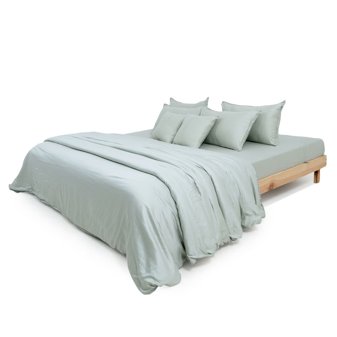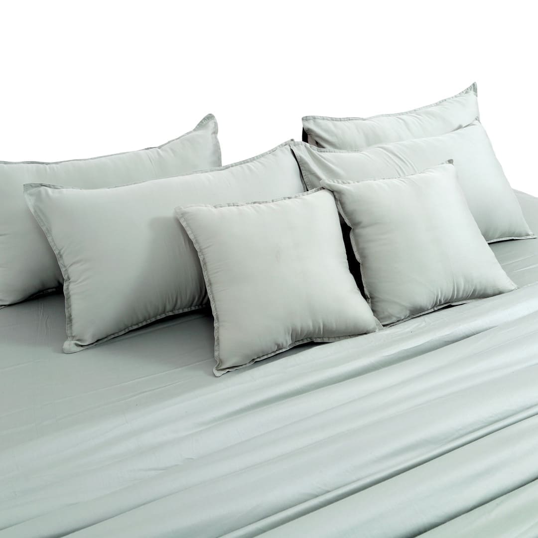 ZARF Italian Staple Weave Comforter With 2 Designer Pillow Cases, 2 Solid Pillowcases & 2 Cushion Covers - Pine