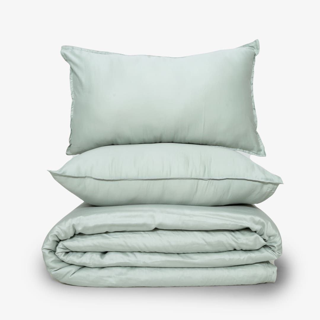 Zarf King Size French Muzlin Velvet Comforters With 2 Cushion Covers - Sage