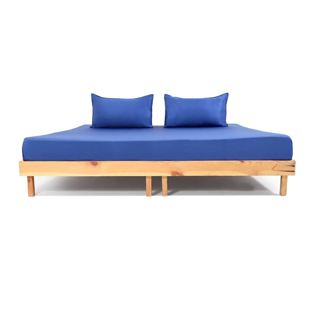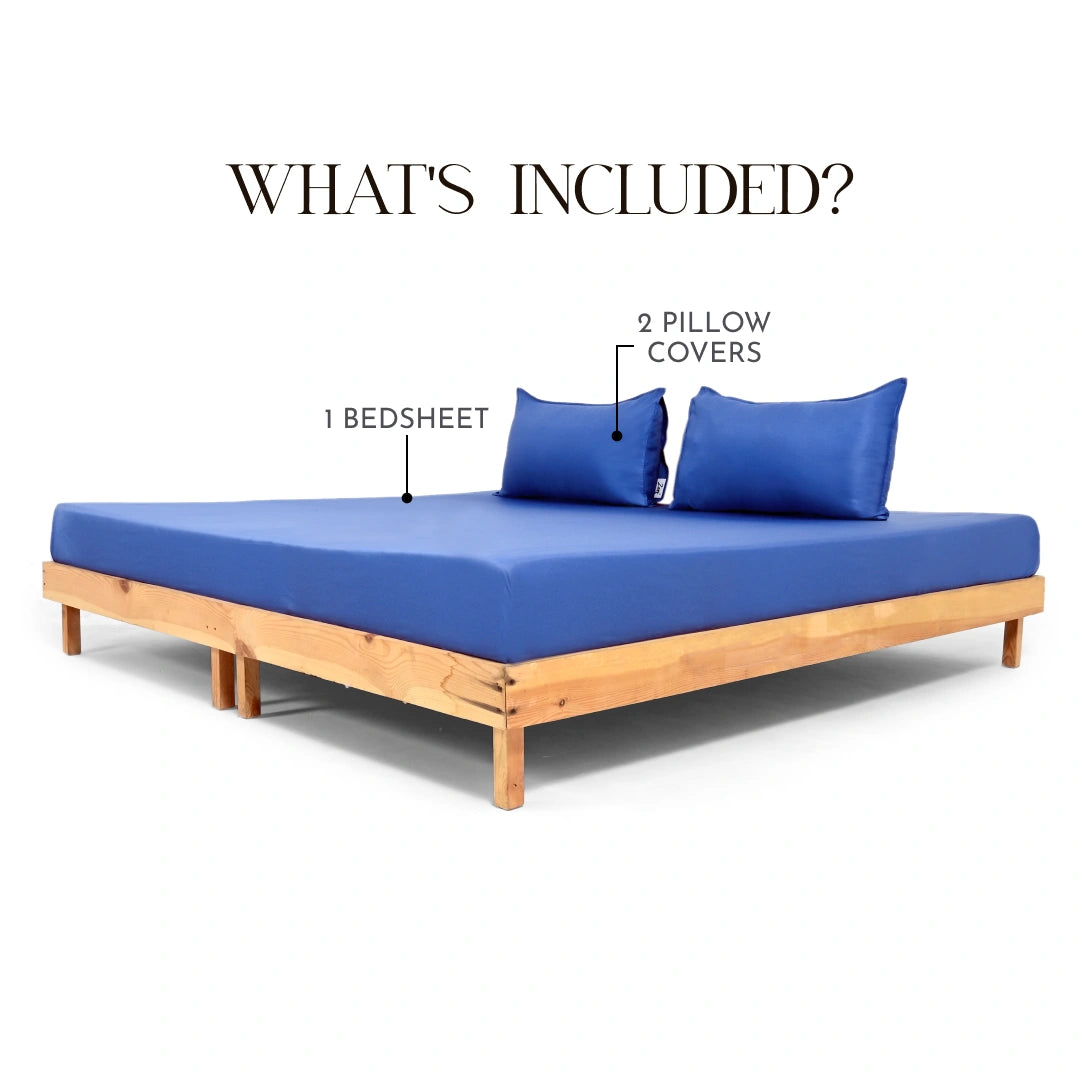 ZARF Italian Staple Weave Bedsheet With 2 Solid Pillowcases - Indigo