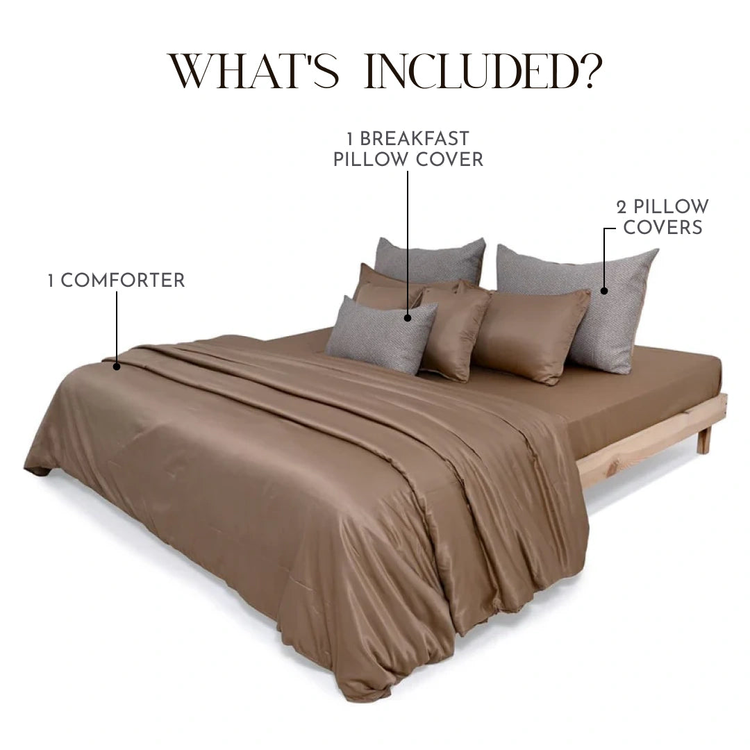 Zeries Egyptian Cotton Bedsheets With 2 Pillow Cases & 2 Cushion Covers - Walnut