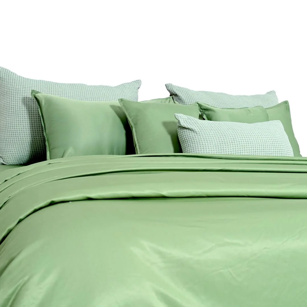 ZARF Italian Staple Weave Comforter With 2 Designer Pillow Cases 1 Breakfast Cushion Cover - Basil