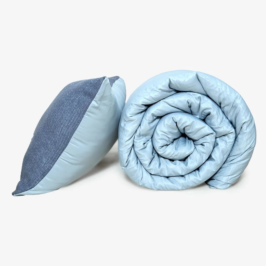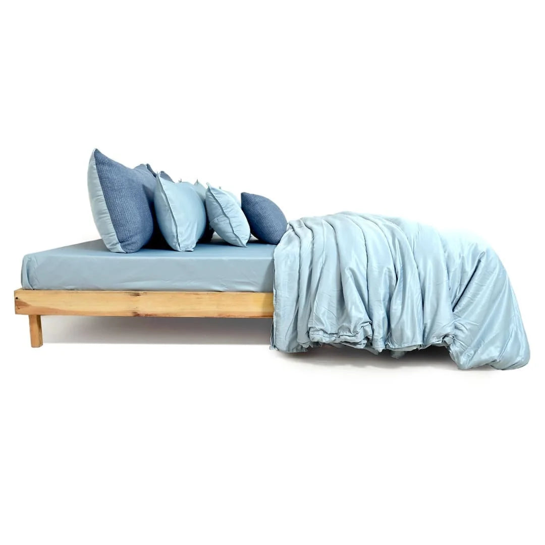 ZARF Italian Staple Weave Comforter With 2 Designer Pillow Cases 1 Breakfast Cushion Cover - Cielo