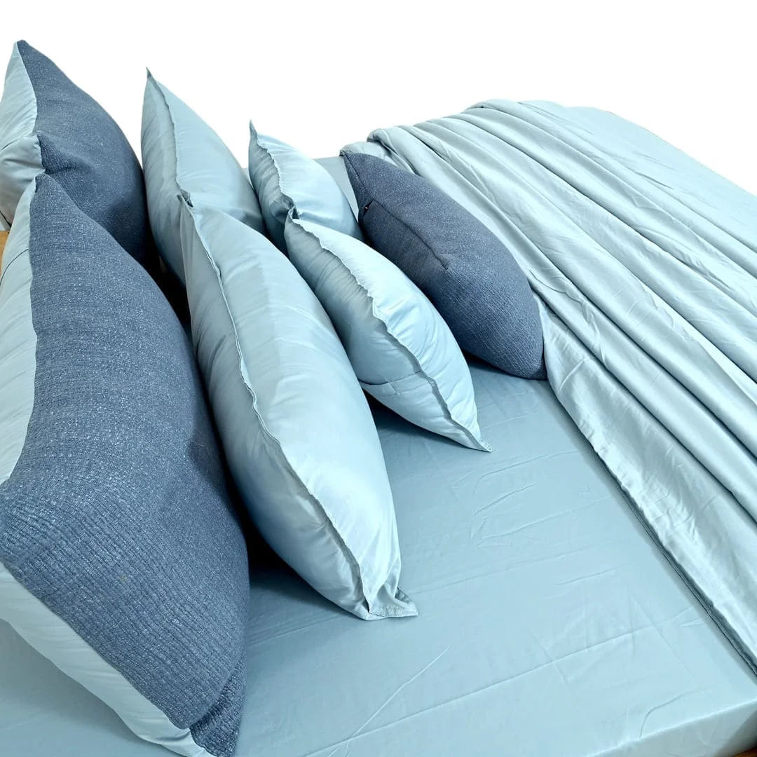 ZARF Italian Staple Weave Bedsheet With 2 Designer Pillow Cases, 2 Solid Pillowcases & 2 Cushion Covers - Skyline