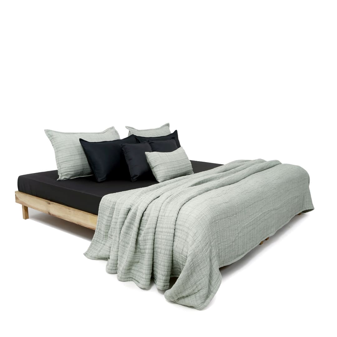 ZARF Italian Staple Weave Bedsheet With 2 Designer Pillow Cases, 2 Solid Pillowcases & 2 Cushion Covers - Pine