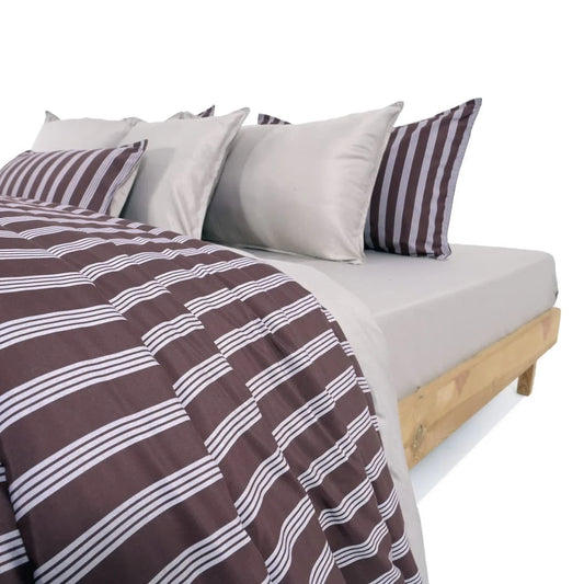 ZARF Italian Staple Weave Comforter With 2 Designer Pillow Cases 1 Breakfast Cushion Cover - Grain