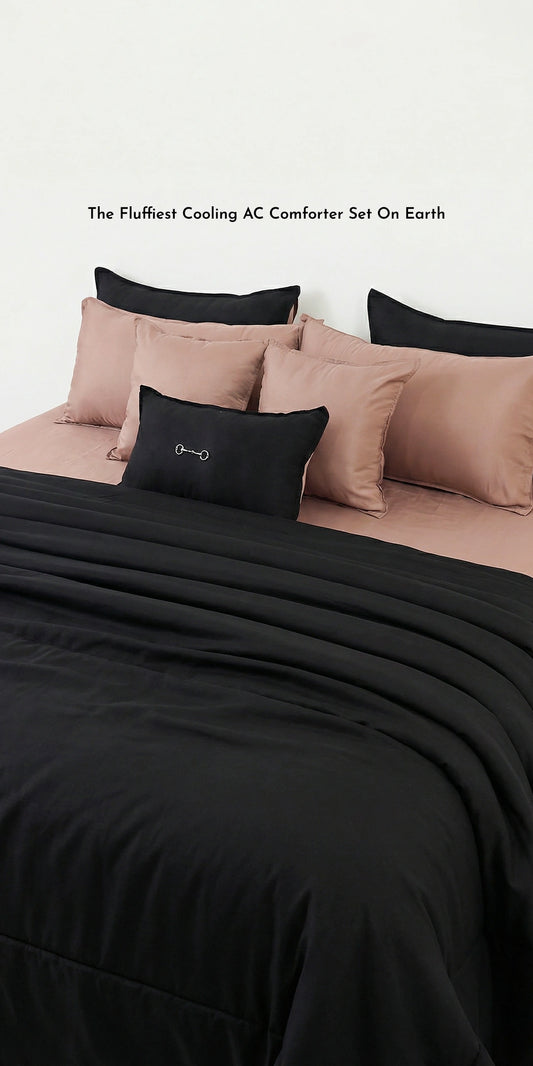 Linen Blend AC Comforter With 2 Pillow Cases and 1 Breakfast Pillow - Ember