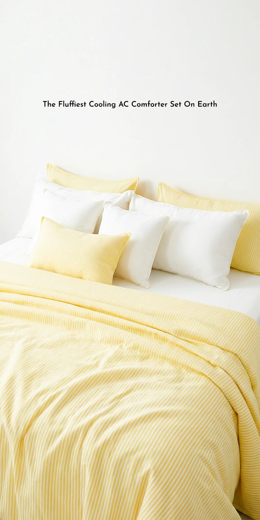 Linen Blend AC Comforter With 2 Pillow Cases and 1 Breakfast Pillow - Limone