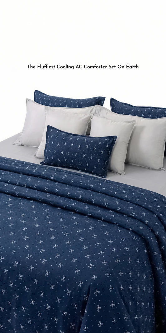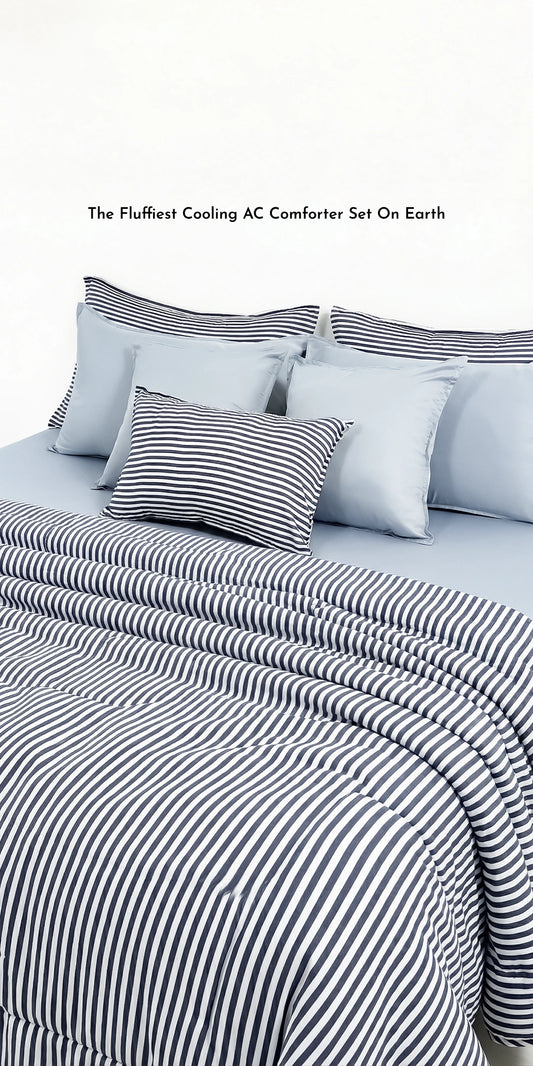 Linen Blend AC Comforter With 2 Pillow Cases and 1 Breakfast Pillow - Nautical