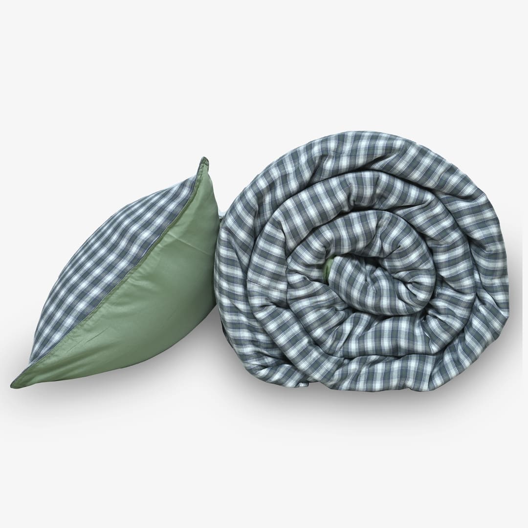 ZARF Italian Staple Weave Comforter With 2 Designer Pillow Cases, 2 Solid Pillowcases & 2 Cushion Covers - Pine