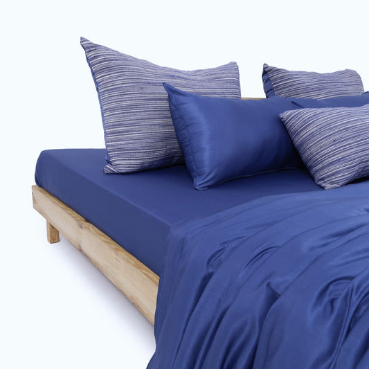 ZARF Italian Staple Weave Comforter With 2 Designer Pillow Cases, 2 Solid Pillowcases & 2 Cushion Covers - Indigo