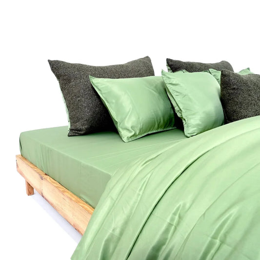ZARF Italian Staple Weave Comforter With 2 Designer Pillow Cases 1 Breakfast Cushion Cover - Basil