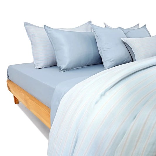 ZARF Italian Staple Weave Comforter With 2 Designer Pillow Cases 1 Breakfast Cushion Cover - Cielo
