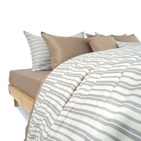 ZARF Italian Staple Weave Comforter With 2 Designer Pillow Cases 1 Breakfast Cushion Cover - Grain
